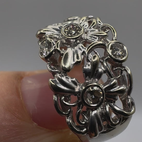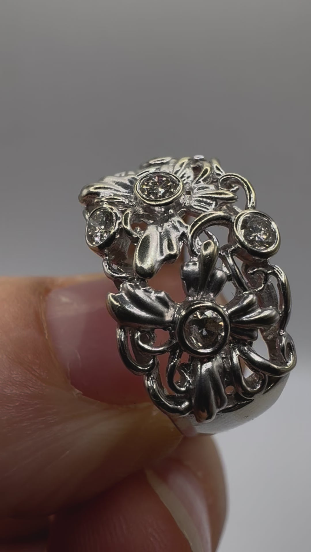 18ct white gold (XRF tested ) with diamond stunner! This is an absolutely phenomenal piece which is waiting for the perfect person to come along and make her their forever piece. 5 bright diamonds create the centre of the flowers.