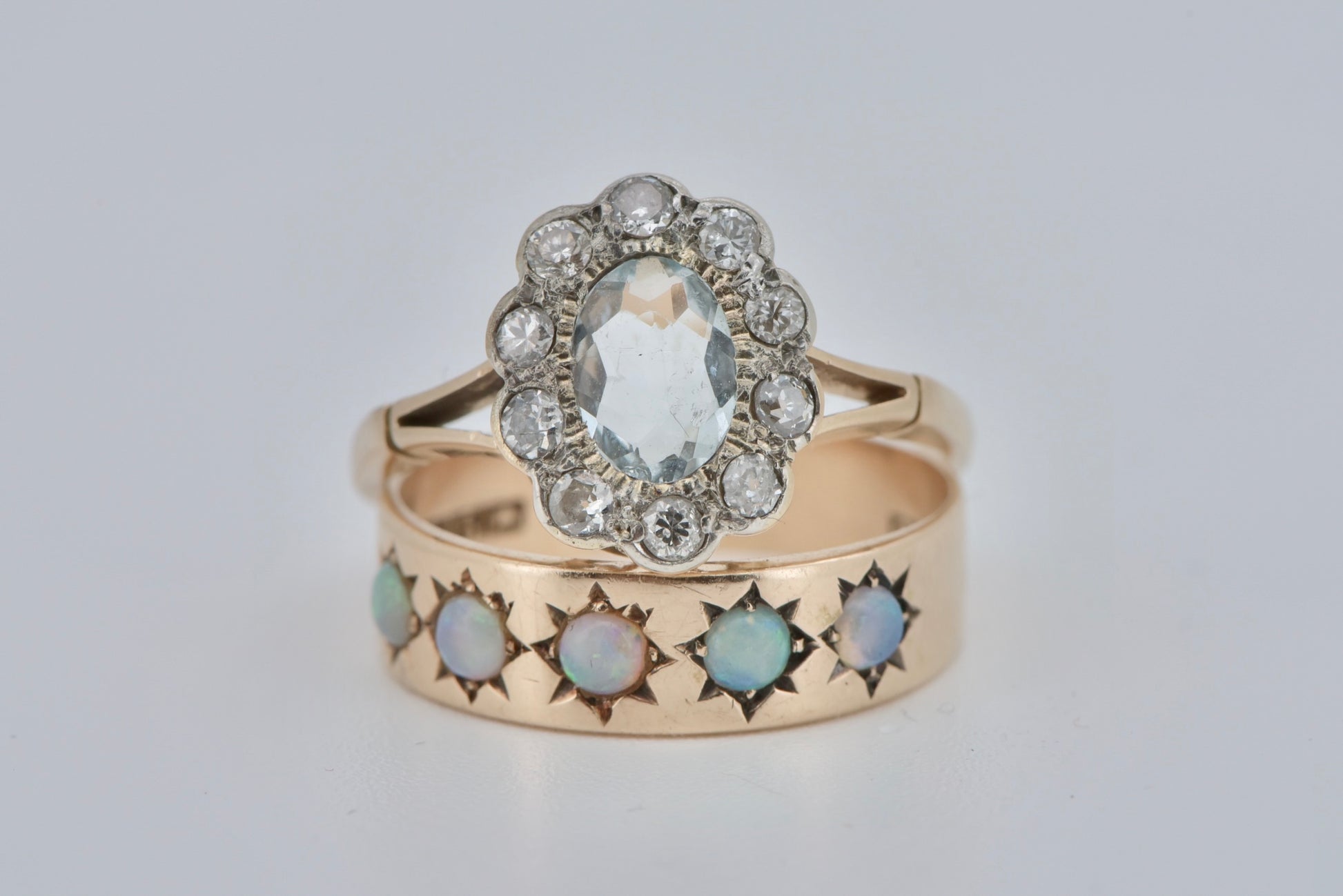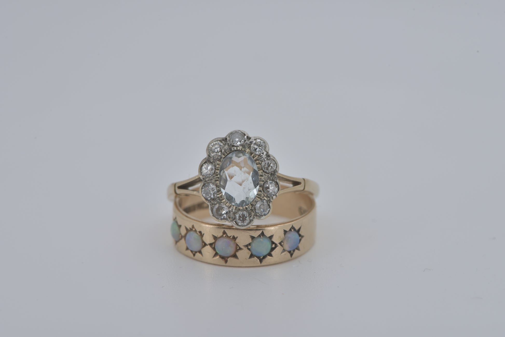 Annelise - Handmade vintage 16ct yellow gold Aquamarine and diamond gold ring