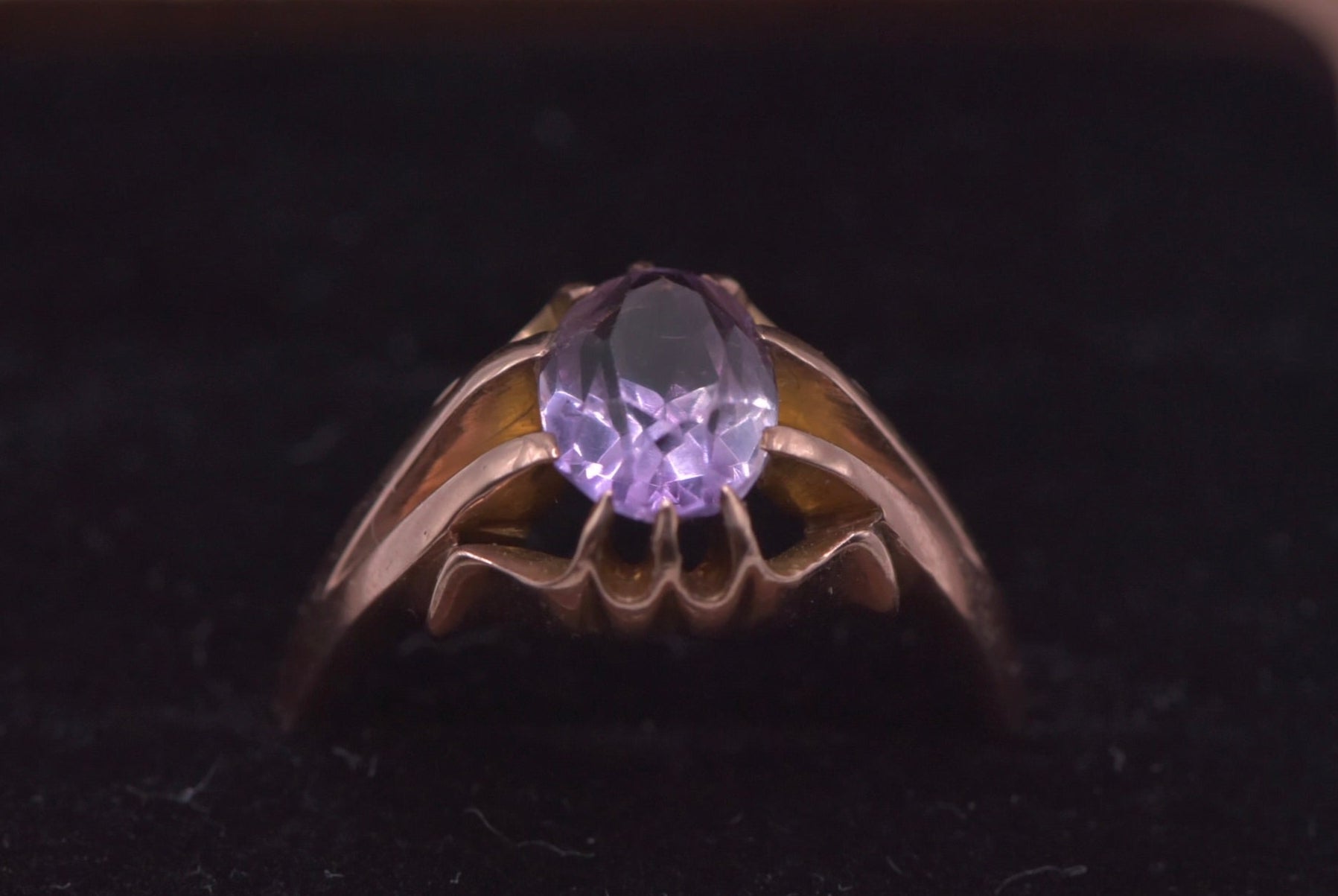 Antique Lavender amethyst belcher style ring in 9ct rose gold.